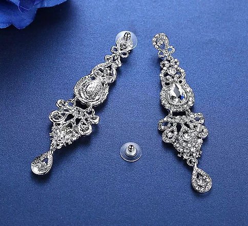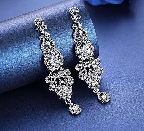 Longues boucles d’oreilles de couleur argenté et composé de strass transparent